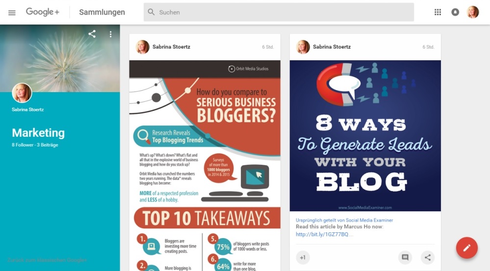 Schauen Sie sich interaktiv unser Google Plus-Profil an, um den Mehrwert der Sammlungen selbst zu überprüfen.